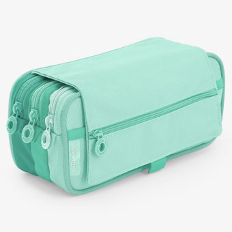 Customise your triple pencil case at Stikets in spring green shades with three zipper pouches: mint, aquamarine, and emerald. Choose your preferred icon and add your name for a personalised, three-compartment school case.